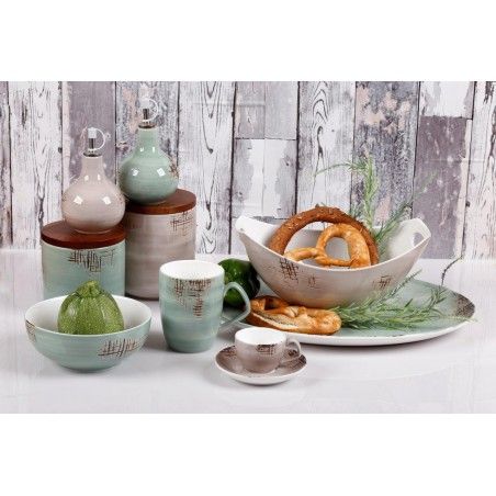 Σετ αλατοπίπερο που διαθέτει ένα δοχείο σε μπεζ και ένα δοχείο σε πράσινη απόχρωση. Η σειρά προϊόντων “Country” από την Cryspo Trio κατασκευασμένη από υψηλής ποιότητας πορσελάνη, σας προσφέρει όμορφη αισθητική και αυξημένη ανθεκτικότητα στην καθημερινή χρήση.