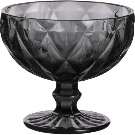 Μπολ Παγωτού Γκρι Σκούρο με πόδι από τη σειρά Kare με την υπογραφή της εταιρείας Cryspo Trio με vintage σχεδιασμό και μοτίβο ανάγλυφων ρόμβων.