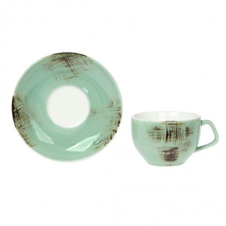 Φλιτζάνι καπουτσίνο με πιατάκι της σειράς “Country Green” από την Cryspo Trio. Η σειρά προϊόντων “Country” κατασκευασμένη από υψηλής ποιότητας πορσελάνη, σας προσφέρει όμορφη αισθητική και αυξημένη ανθεκτικότητα στην καθημερινή χρήση.